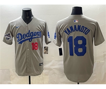 Your Position: Home>NIKE MLB Jerseys>Los Angeles Dodgers >Men>Men's Los Angeles Dodgers #18 Yoshinobu Yamamoto Gray 2025 World Series Champions Patch Stitched Baseball Jersey