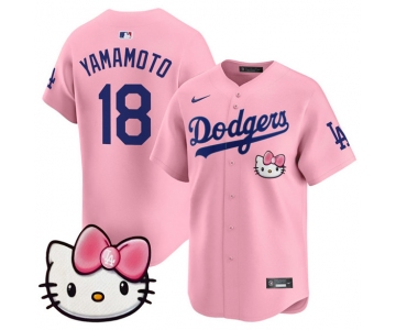 Men's Los Angeles Dodgers #18 Yoshinobu Yamamoto Pink 2025 Hello Kitty Vapor Limited Stitched Baseball Jersey