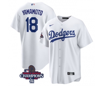 Men's Los Angeles Dodgers #18 Yoshinobu Yamamoto White 2024 World Series Champions Home Limited Stitched Baseball Jersey
