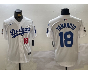 Your Position: Home>NIKE MLB Jerseys>Los Angeles Dodgers >Men>Men's Los Angeles Dodgers #18 Yoshinobu Yamamoto White 2024 World Series With Fernando Memorial Patch Home Limited Stitched Baseball Jerseys