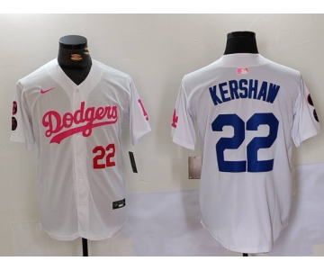 Men's Los Angeles Dodgers #22 Clayton Kershaw White Pink Vin & Kobe Patch Stitched Baseball Jerseys