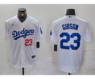 Men's Los Angeles Dodgers #23 Kirk Gibson Number White Cool Base Stitched Jersey