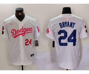 Men's Los Angeles Dodgers #24 Kobe Bryant White Pink Vin & Kobe Patch Stitched Baseball Jerseys