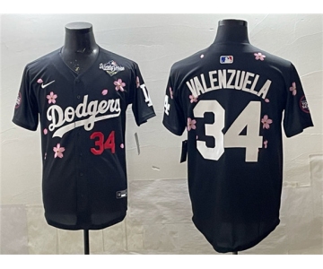 Men's Los Angeles Dodgers #34 Fernando Valenzuela Black 2025 World Series Patch Tokyo Series Limited Stitched Baseball Jersey