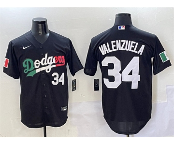 Men's Los Angeles Dodgers #34 Fernando Valenzuela Black Mexico Flag Cool Base Stitched Baseball Jersey