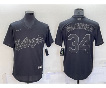 Men's Los Angeles Dodgers #34 Fernando Valenzuela Black Pullover Turn Back The Clock Stitched Cool Base Jersey