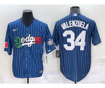 Men's Los Angeles Dodgers #34 Fernando Valenzuela Navy Blue Pinstripe 2020 World Series Cool Base Nike Jersey