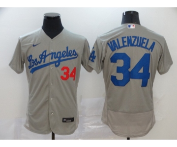 Men's Los Angeles Dodgers #34 Fernando Valenzuela Replica Grey Road Cool Base Baseball Jersey