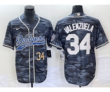 Men's Los Angeles Dodgers #34 Toro Valenzuela Gray Camo Cool Base With Patch Stitched Baseball Jersey
