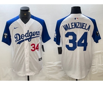 Mens Los Angeles Dodgers #34 Toro Valenzuela Number White Blue Fashion Stitched Cool Base Limited Jersey