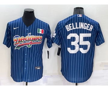 Men's Los Angeles Dodgers #35 Cody Bellinger Rainbow Blue Red Pinstripe Mexico Cool Base Nike Jersey