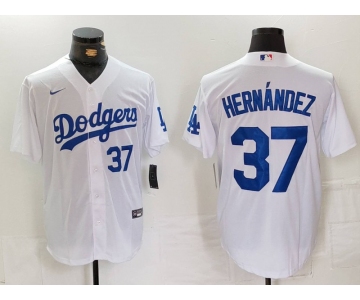 Men's Los Angeles Dodgers #37 Teoscar Hernandez Number White Cool Base Stitched Jerseys