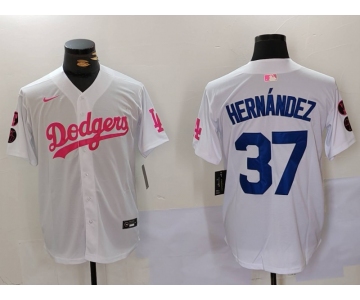 Men's Los Angeles Dodgers #37 Teoscar Hernández White Pink Vin & Kobe Patch Stitched Baseball Jersey