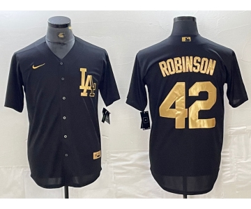 Men's Los Angeles Dodgers #42 Jackie Robinson Black Gold Cool Base Stitched Jersey