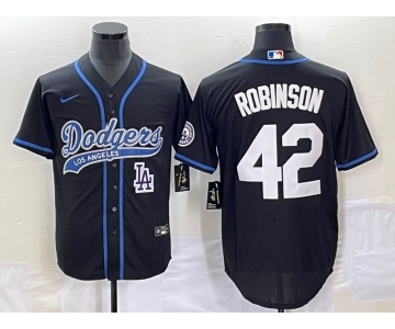 Men's Los Angeles Dodgers #42 Jackie Robinson Black With Patch Cool Base Stitched Baseball Jersey1