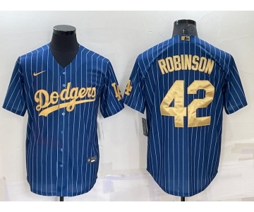 Men's Los Angeles Dodgers #42 Jackie Robinson Navy Blue Gold Pinstripe Stitched MLB Cool Base Nike Jersey