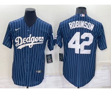 Men's Los Angeles Dodgers #42 Jackie Robinson Navy Blue Pinstripe Stitched MLB Cool Base Nike Jersey