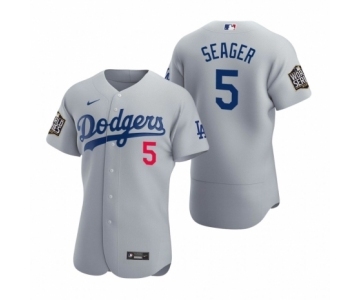 Men's Los Angeles Dodgers #5 Corey Seager Nike Gray 2020 World Series Authentic Jersey