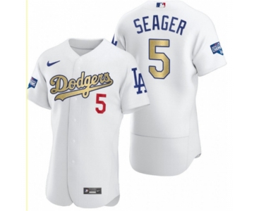 Men's Los Angeles Dodgers #5 Corey Seager Olive Gold 2020 World Series Champions Authentic Jersey