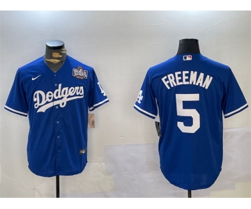 Men's Los Angeles Dodgers #5 Freddie Freeman Blue 2024 World Series Cool Base Stitched Baseball Jersey