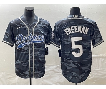 Men's Los Angeles Dodgers #5 Freddie Freeman Gray Camo Cool Base With Patch Stitched Baseball Jersey