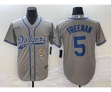 Men's Los Angeles Dodgers #5 Freddie Freeman Number Grey Cool Base Stitched Baseball Jersey