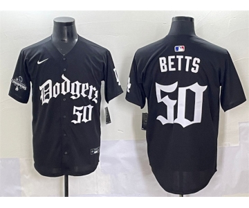 Men's Los Angeles Dodgers #50 Mookie Betts Black 2025 LA Gothic Style With 2024 World Series Champions Patch Vapor Premier Limited Stitched Baseball Jersey