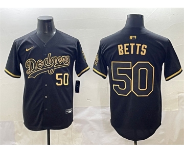 Men's Los Angeles Dodgers #50 Mookie Betts Black Gold Limited Stitched Jersey