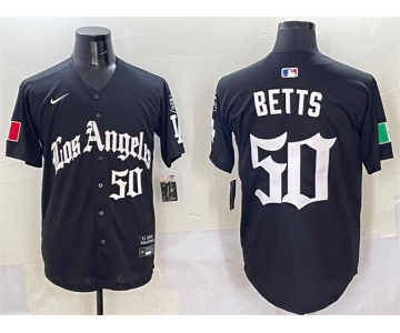 Men's Los Angeles Dodgers #50 Mookie Betts Black Mexico 2025 LA Gothic Style With Fernando Patch Vapor Premier Limited Stitched Baseball Jersey