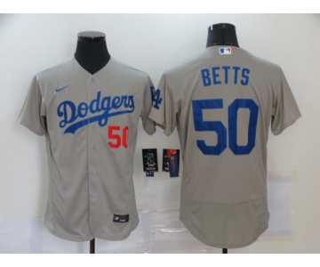 Men's Los Angeles Dodgers #50 Mookie Betts Grey Flexbase Authentic Collection Baseball Jersey1