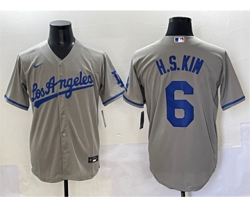 Men's Los Angeles Dodgers #6 H.S.Kim Gray Cool Base Stitched Baseball Jersey