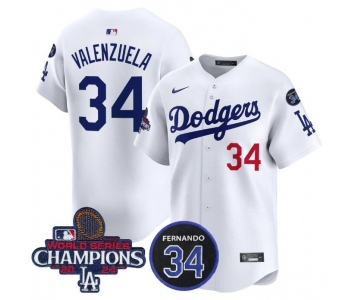 Men's Los Angeles Dodgers Active Player Cuatom White 2024 World Series Champions With Fernando Memorial Patch Home Limited Stitched Baseball Jersey