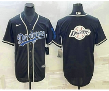 Men's Los Angeles Dodgers Big Logo Black Cool Base Stitched Baseball Jersey1