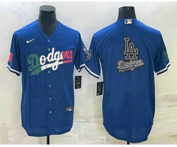 Men's Los Angeles Dodgers Big Logo Navy Blue Pinstripe Stitched MLB Cool Base Nike Jersey1