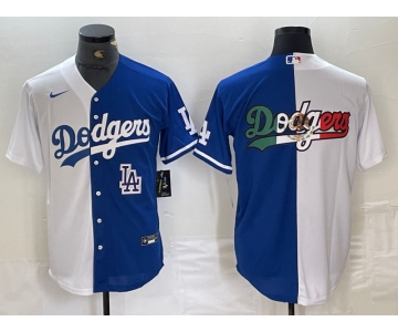 Men's Los Angeles Dodgers Big Logo White Blue Two Tone Stitched Baseball Jersey