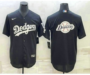 Men's Los Angeles Dodgers Black Team Big Logo Cool Base Stitched Baseball Jersey3