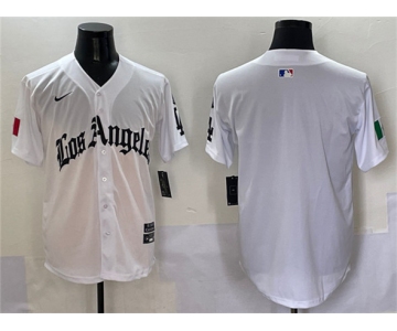 Men's Los Angeles Dodgers Blank White Mexico 2025 LA Gothic Style With Fernando Patch Vapor Premier Limited Stitched Baseball Jersey