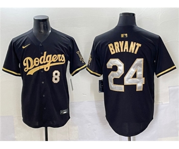 Men's Los Angeles Dodgers Front #8 Back #24 Kobe Bryant Black Gold Limited Stitched Jersey