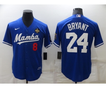 Your Position: Home>NIKE MLB Jerseys>Los Angeles Dodgers >Men>Men's Los Angeles Dodgers Front #8 Back #24 Kobe Bryant Royal 'Mamba' Throwback With KB Patch Cool Base Stitched Jersey
