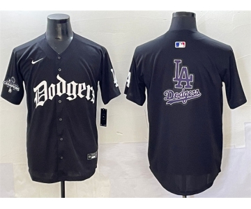 Your Position: Home>NIKE MLB Jerseys>Los Angeles Dodgers >Men>Men's Los Angeles Dodgers Team Big Logo Black 2025 LA Gothic Style With 2024 World Series Champions Patch Vapor Premier Limited Stitched Baseball Jersey