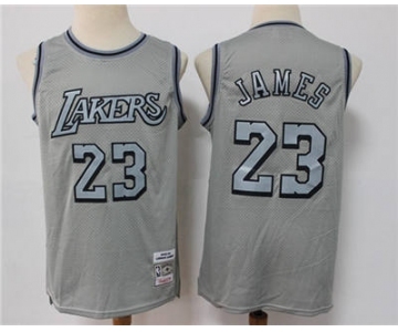 Men's Los Angeles Lakers #23 LeBron James Gray Throwback Stitched Basketball Jersey