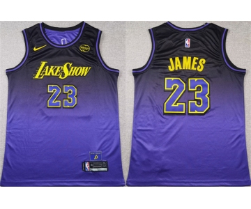 Men's Los Angeles Lakers #23 LeBron James Purple 2024 Stitched Basketball Jersey