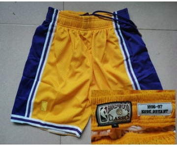 Men's Los Angeles Lakers #24 Kobe Bryant 1996-97 Yellow Hardwood Classics Soul Swingman Throwback Shorts