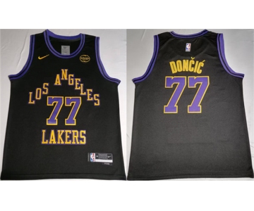 Men's Los Angeles Lakers #77 Luka Doncic Black 2025 Stitched Basketball Jersey