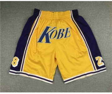 Men's Los Angeles Lakers #8 #24 Kobe Bryant Yellow Just Don Swingman Throwback Shorts
