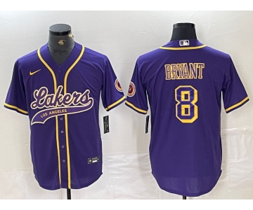 Men's Los Angeles Lakers #8 Kobe Bryant Purple Cool Base Stitched Baseball Jersey