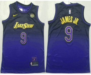 Men's Los Angeles Lakers #9 Bronny James Jr Purple 2024 City Edition Swingman Sponsor Stitched Jersey