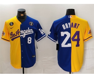 Men's Los Angeles Lakers & Dodgers Front #8 Back #24 Kobe Bryant Gold Blue Split With Patch Stitched Jersey