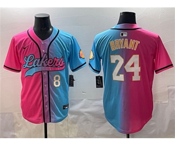 Men's Los Angeles Lakers Front #8 Back #24 Kobe Bryant Pink Blue Limited Stitched Jersey