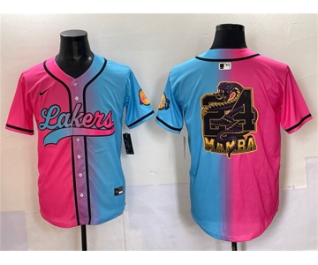 Men's Los Angeles Lakers Team Big Logo Pink Blue Limited Stitched Baseball Jersey